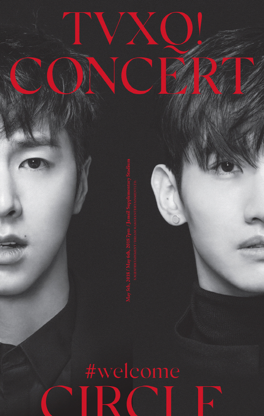 오는 5월 5~6일 양일간 서울 잠실 종합운동장 내 보조경기장에서 단독 콘서트 'TVXQ! CONCERT -CIRCLE- #welcome'을 개최하는 동방신기는 금일(20일) 두 멤버의 얼굴이 담긴 포스터를 공개해 공연에 대한 기대감을 더욱 증폭시키고 있다.