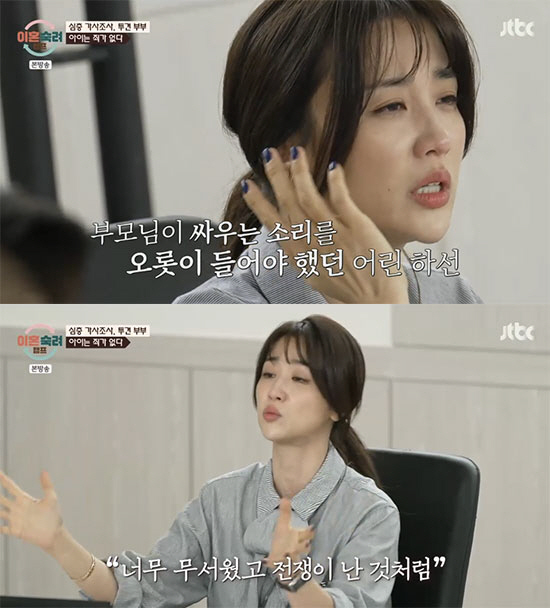 그러면서 "왜 울었냐면, 어렸을 가 생각나서 울었다"는 박하선은 "저도 이혼 가정에서 자랐다. 어렸을 때 부모님이 싸우시면, 동생이랑 건너방에서 자다가도 시끄러워서 일어난다. 다 듣는다. 너무 무섭다. 전쟁이 난 것처럼 무섭다"고 이야기했다. 이어 "저도 이렇게까지 트라우마가 있는지 몰랐는데, 영상을 보는 순간 떠올라서 너무 괴로웠다"고 토로했다.