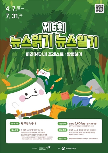 (서울=연합뉴스) 임순현 기자 = 문화체육관광부와 한국언론진흥재단은 7월 31일까지 미디어 교육 공모전인 '제6회 뉴스읽기 뉴스일기' 참가 신청을 받는다고 14일 밝혔다.