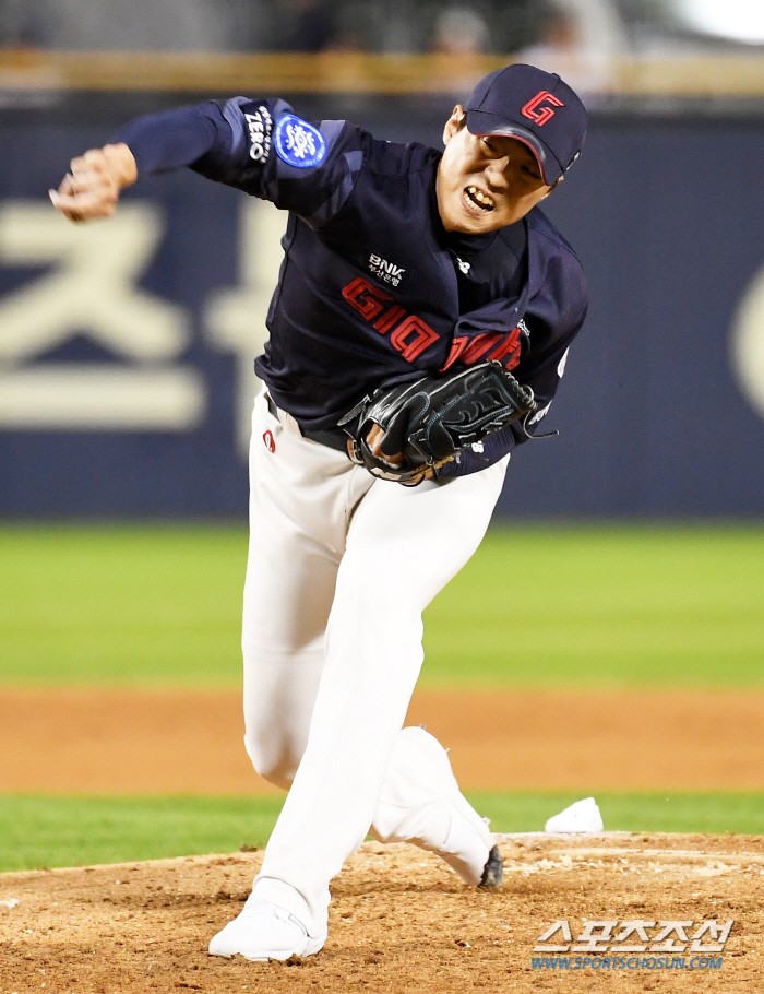 6회 선두타자 두산 양의지를 상대로 초구 145km 직구를 스트라이크존에 과감히 꽂아 넣은 구승민은 1B 2S서 4구째 134km 포크볼을 던져 중견수 뜬공으로 첫 타자를 요리했다.