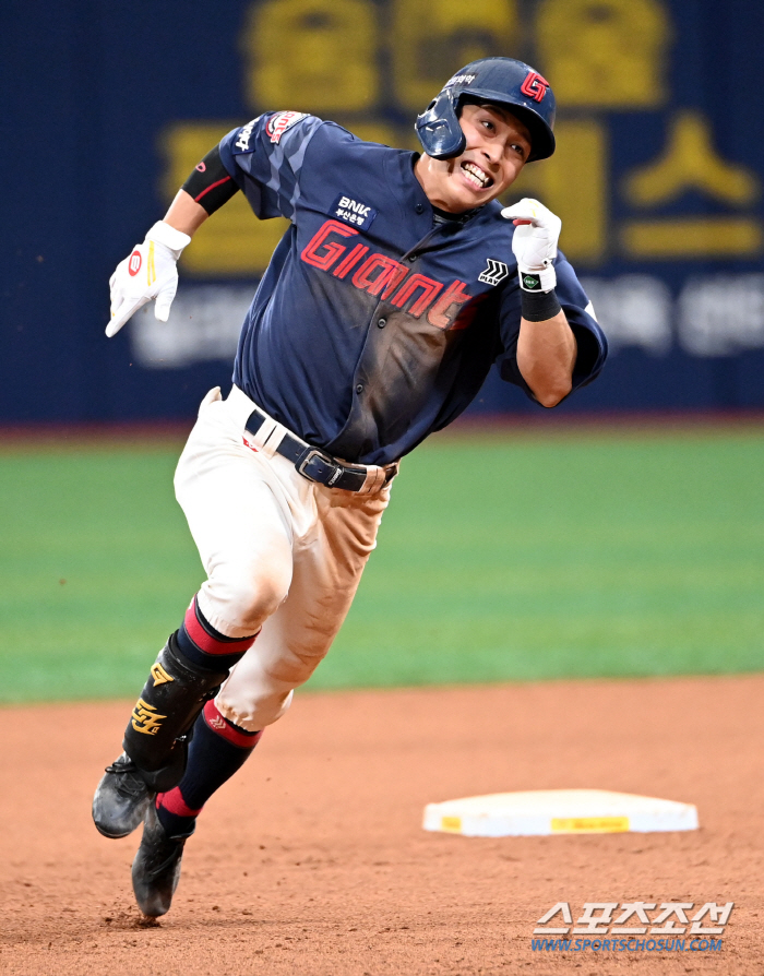 더그아웃에서 기쁨을 나누던 황성빈은 희생타로 자신을 불러준 윤동희와 마주하며 활짝 웃었다. 천금 같은 추가 득점을 합작한 황성빈과 윤동희는 서로를 꼭 끌어안고 기쁨을 함께했다.