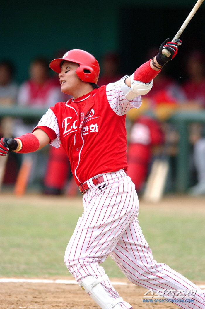 3회말 2사 만루에서 좌월 그랜드슬램을 쏘아 올린 김태균의 날렵한 모습