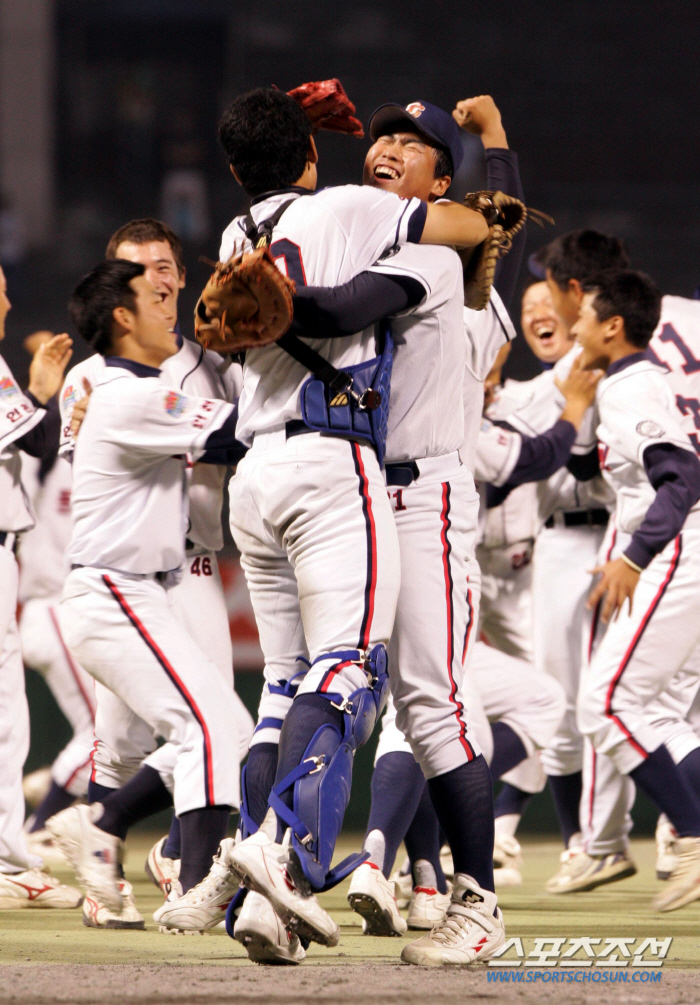 2005년 6월 9일 청룡기 우승을 차지한 동산고. 감격에 겨운 류현진의 모습