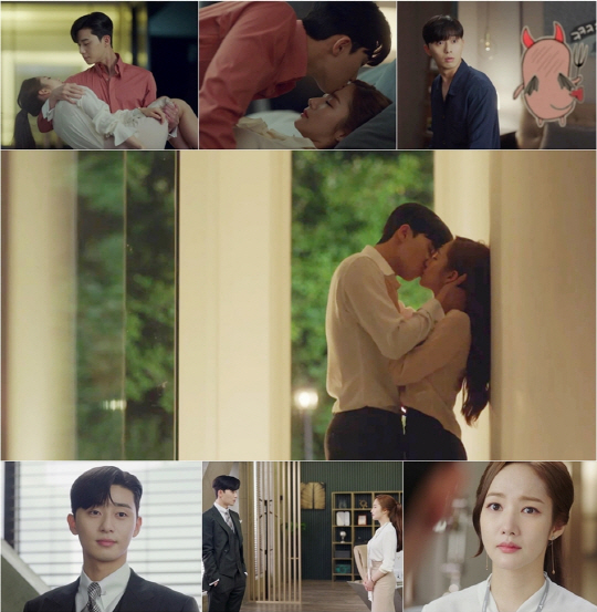 지난 18일 방송된 tvN 수목드라마 '김비서가 왜 그럴까'(백선우 최보림 극본, 박준화 연출, 이하 김비서)에서는 이영준(박서준)이 김미소(박민영)에게 질주하는 '불도저' 같은 모습을 보이며 드디어 두 사람의 첫날 밤이 그려졌다. 이영준과 김미소가 애타게 기다려왔듯, 시청자들도 기다려왔던 전개. 기다림에 부응하듯 달콤한 분위기를 연출했던 이영준과 김미소였다.