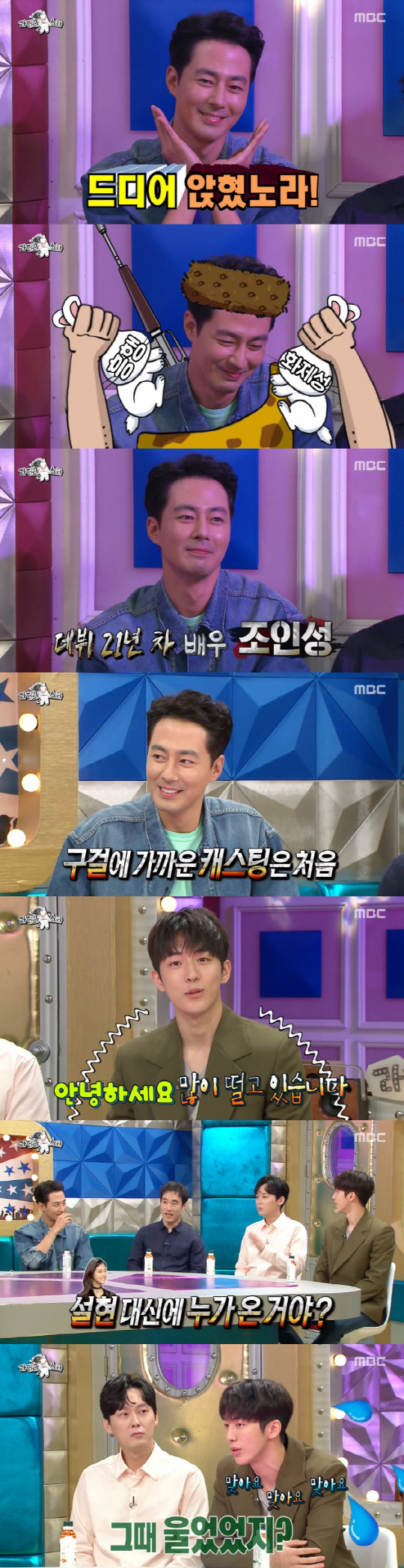 이에 조인성은 "차태현과 친해서 언젠가는 한 번쯤은 나와야 할 것 같다는 생각이 들었다. 이날 이해관계가 맞아서 출연하게 됐다"고 말했다.