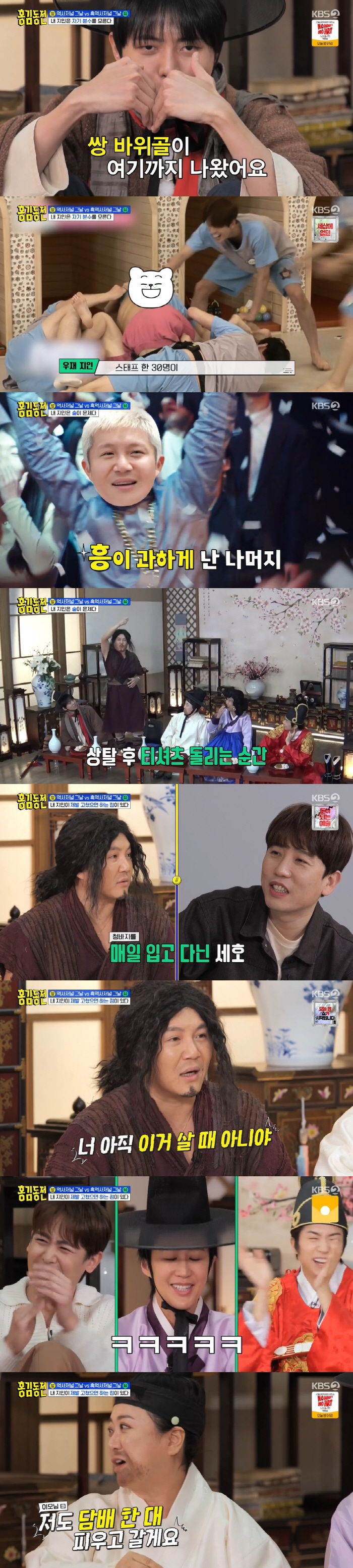 23일 방송된 KBS 2TV '홍김동전'에서는 KBS 공영방송 50주년을 맞아 'KBS 방송 오마주 특집'으로 시사/교양 프로그램 '역사저널 그날' 오마주가 펼쳐졌다.