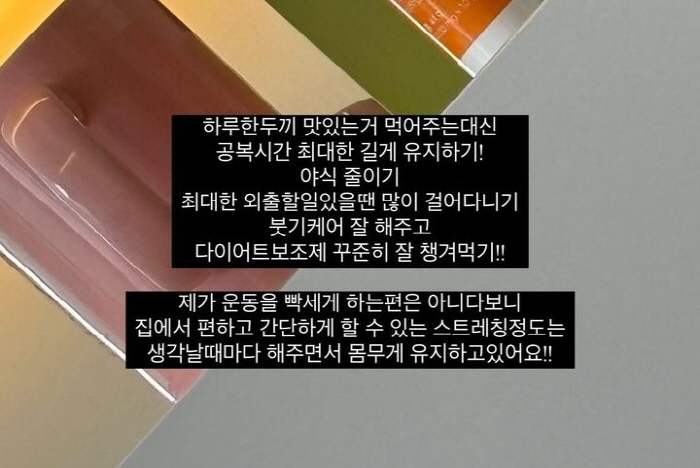 또 율희는 '다이어트 방법 있냐'는 팬의 질문에 "하루 한두끼 맛있는 거 먹어주는 대신 공복시간 최대한 길게 유지하기", "야식 줄이기" ,"최대한 외출할 일 있을 땐 많이 걷기", "붓기케어 잘해주고 다이어트 보조제 꾸준히 잘 챙겨 먹기" 라면서 "운동을 빡세게 하는 편이 아니다보니 집에서 편하고 간단하게 할 수 있는 스트레칭 정도는 생각날 때마다 해주면서 몸무게 유지하고 있다"고 현실적인 다이어트 팁을 전했다.