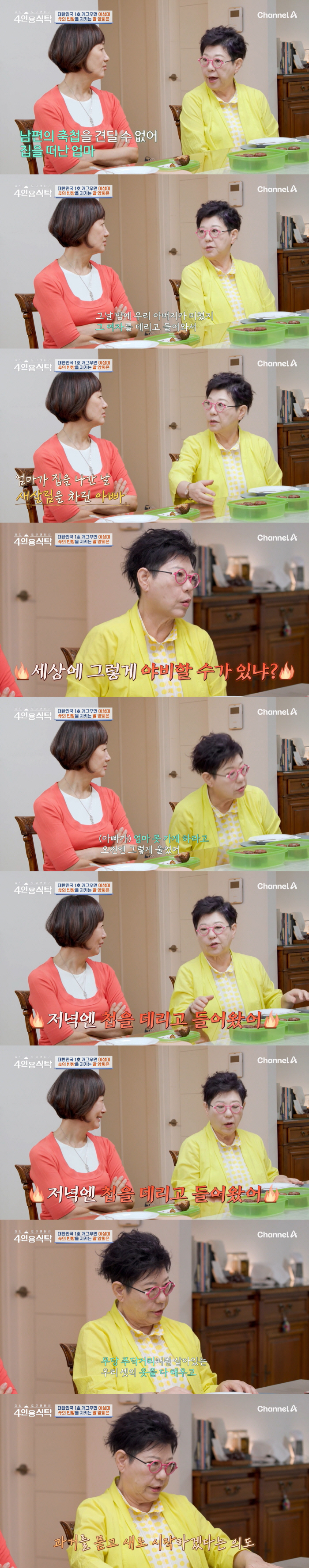 또한 "아버지가 엄마 못 가게, 오전에는 붙잡고 울더니 저녁에는 '헤헤' 거리고 첩을 데리고 들어왔다. 그리고 세 자매는 큰집으로 보내더니 무당 푸닥거리처럼 살아았는 우리 셋의 옷은 불에 태웠다. 그게 죽음 의식이다"라며 충격적인 일화를 공개해 놀라움을 자아냈다.