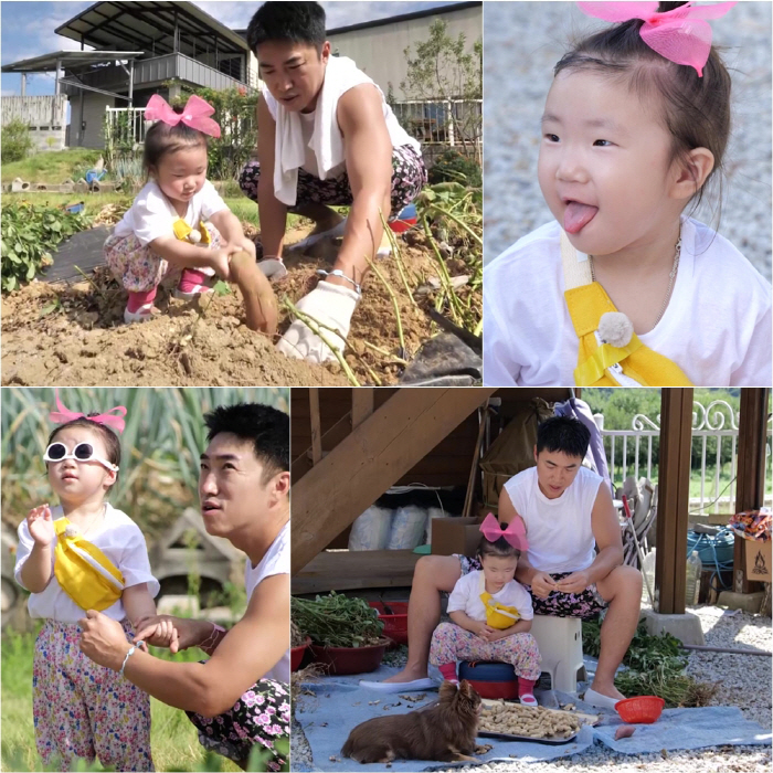 이날 장동민과 지우는 커플룩으로 꽃무늬 일바지를 맞춰 입고 얼굴부터 발까지 빼닮은 부녀의 등장으로 눈길을 끈다. 지우는 "할머니~ 우리가 많이 캐올게요"라며 사랑스러운 애교와 함께 밭으로 나선다. 지우는 땅콩을 보자마자 "피넛!"이라고 외치며 유창한 영어 실력을 발휘해 놀라움을 선사한다.