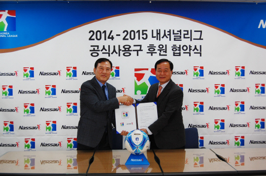 (사)한국실업축구연맹(회장 권오갑)은 28일 대한축구협회 회의실에서 (주)낫소와 내셔널리그 공인구 협약식을 가졌다.