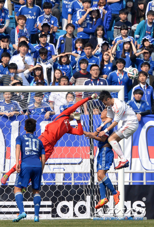 수원 삼성이 16일 수원월드컵경기장에서 상주 상무와 K리그 클래식 2라운드 홈경기를 펼쳤다. 수원 정성룡 골키퍼가 펀칭으로 위기를 넘기고 있다.수원=송정헌 기자 songs@sportschosun.com/2014.03.16