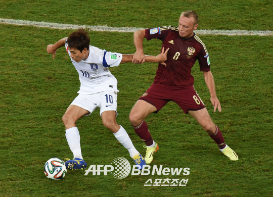 8일 뒤 뚜껑이 열렸다. 박주영은 16강 진출의 분수령이었던 러시아전에 예상대로 선발 출격했다. 가나전과는 180도 다른 모습이었다. 압박이 돋보였다. 손흥민 구자철 이청용 등 2선 공격수와 함께 적극적인 포어체킹(전방 압박)을 펼쳤다. 전반 9분에는 페널티박스 오른쪽으로 쇄도, 이청용 스루패스를 잡으려고 했지만 살짝 못미쳤다. 전반 34분에는 기성용과의 호흡이 돋보였다. 코너킥 상황에서 기성용의 짧은 크로스를 수비수 앞쪽으로 잘라 들어가면서 슈팅을 시도했다. 그러나 수비수가 먼저 걷어냈다.