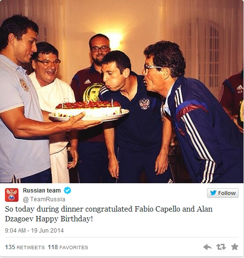 카펠로 감독의 생일은 공교롭게도 한국과 경기가 있던 6월 18일이었다.