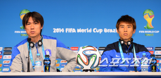 2014브라질월드컵에서 벨기에와 조별예선 3차전을 앞둔 홍명보감독이 26일(한국시간) 상파울루의 아레나 데 상파울루 경기장에서 공식기자회견을 갖고 있다.H조에서 1무1패로 최하위를 기록중인 한국은 27일(한국시간) 벨기에와 조별예선 마지막 경기를 앞두고 있다.상파울루(브라질)=최문영 기자 deer@sportschosun.com /2014.06.26/