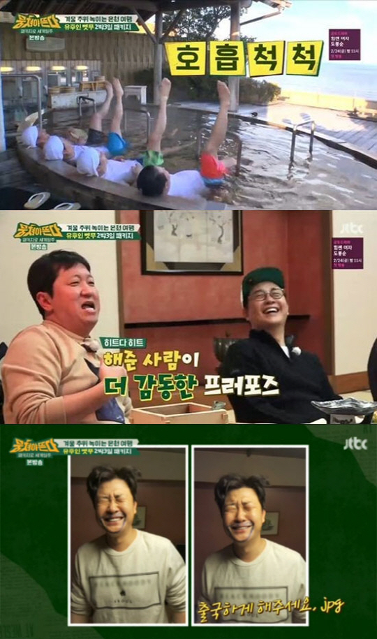 이날 멤버들은 유후인 벳푸 호텔에 도착해 온천을 즐겼다. 여유로운 온천욕에 장난기가 발동한 멤버들은 온천 안 싱크로나이즈드를 연출하묘 남다른 호흡을 자랑했다.
