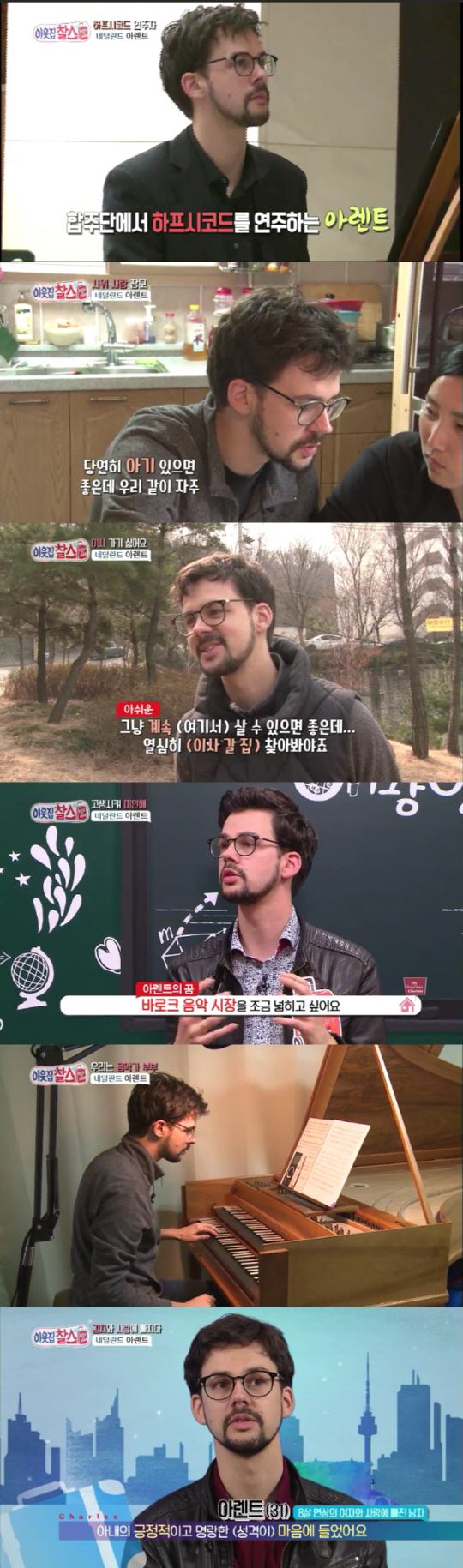 [스포츠조선 남재륜 기자] 오는 화요일 KBS '이웃집 찰스' 137회에서는 네덜란드에서 온 하프시코드 연주자 아렌트를 맞이했다.
