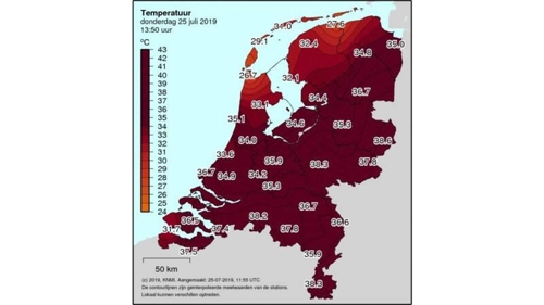 네덜란드도 폭염이 계속되고 있다. 네덜란드 기상청(KNMI)은 이날 오후 2시 54분께 벨기에 국경 인근의 힐즈 레이엔 지역의 기온이 40.4℃를 기록, 75년 만에 최고 기온을 기록했다고 밝혔다.