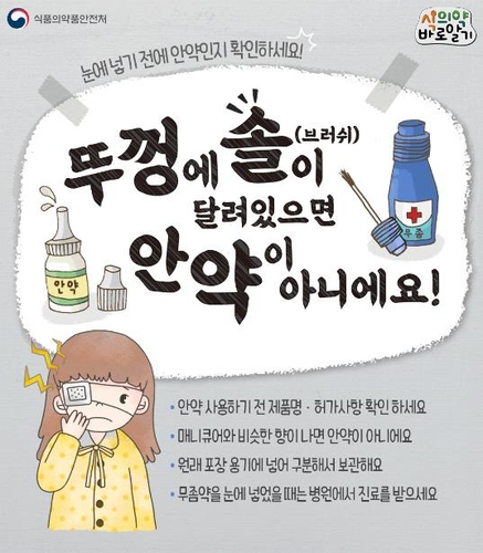 아울러 안약이 아닌 제품을 눈에 넣었을 때는 즉시 많은 양의 물이나 식염수 등으로 씻어낸 후 반드시 병원을 방문해야 한다.