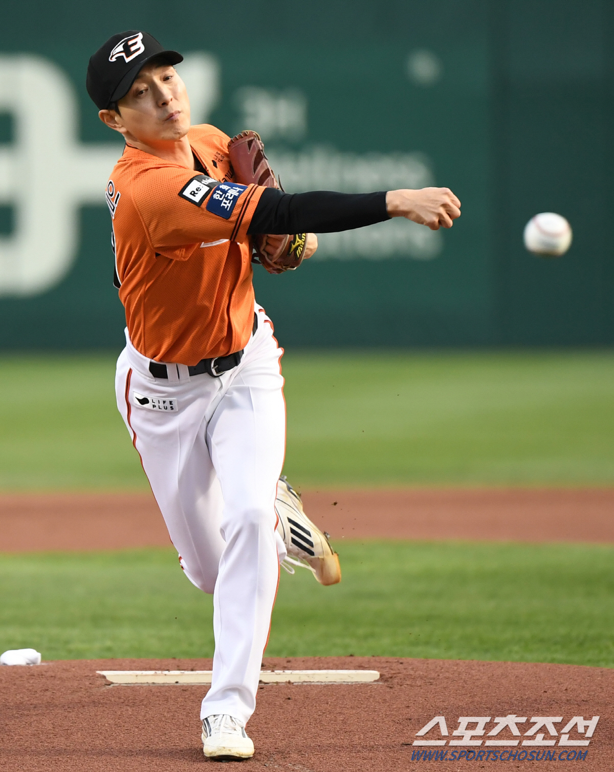 7일 대전 한화생명이글스파크에서 열린 SSG 랜더스와 한화 이글스 경기. 넷플릭스 드라마 '더 글로리'에서 하도영 역을 맡았던 배우 정성일이 시구하고 있다. 대전=정재근 기자 cjg@sportschosun.com/2023.4.7/