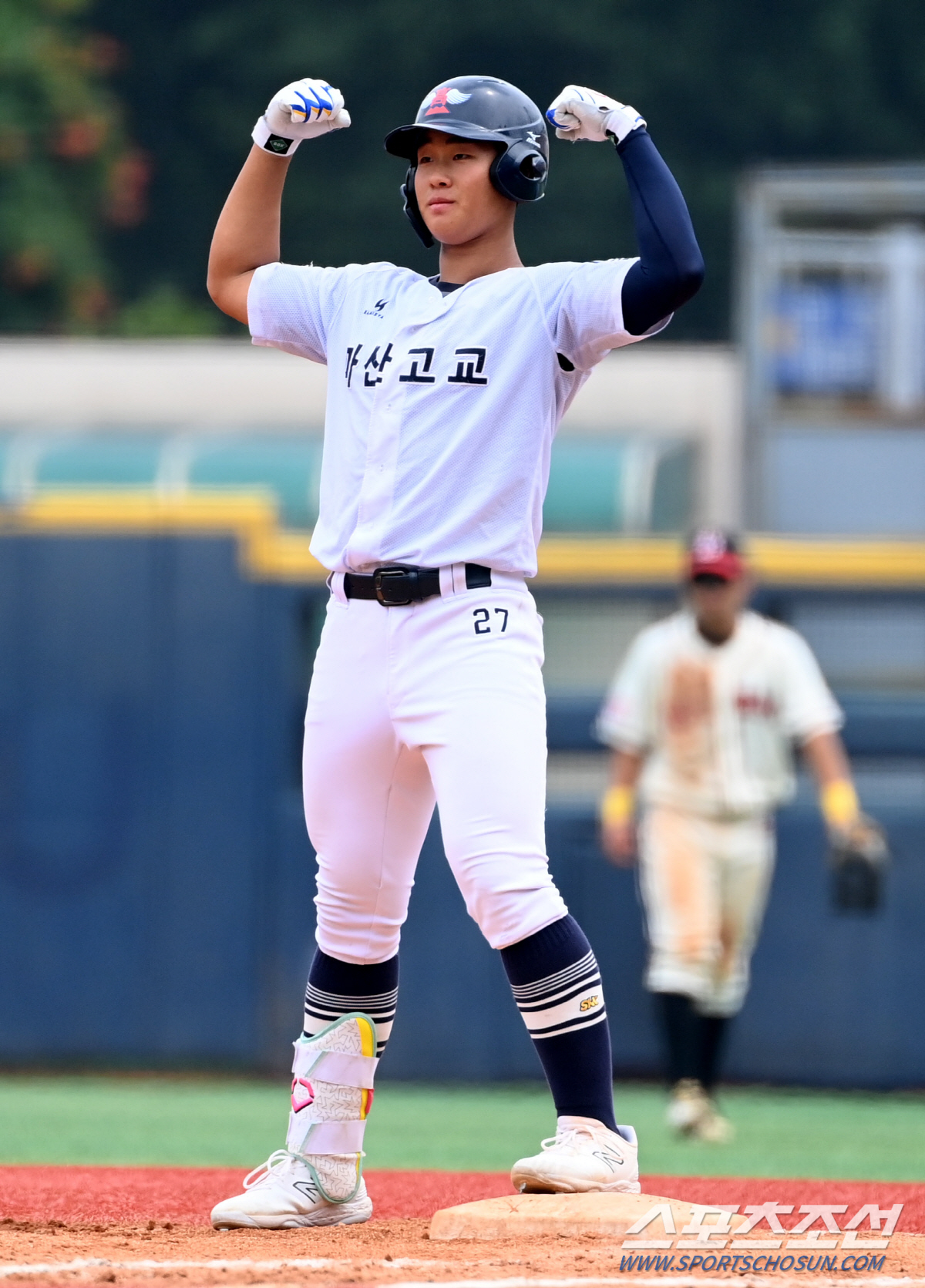 제78회 청룡기 전국고교야구선수권대회 덕수고와 마산고의 경기가 10일 목동야구장에서 열렸다. 4회말 1사 2,3루 성지백이 1타점 동점타를 치고 있다. 목동=허상욱 기자wook@sportschosun.com/2023.07.10/