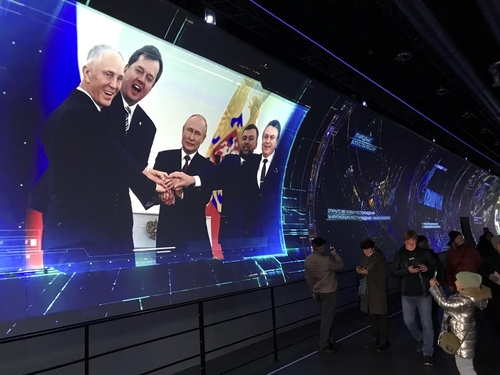 우크라이나와 국제사회는 러시아의 이들 지역 합병을 인정하지 않고 있지만, 박람회 관람객들은 푸틴 대통령과 4개 지역 수장이 손을 맞잡고 축하하는 사진이 영상에 뜨자 발길을 멈추고 사진을 찍어 갔다.