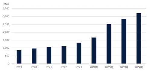 글로벌 부동산 서비스 기업 세빌스코리아가 15일 발간한 '한국 데이터센터 시장 리포트'에 따르면 작년 말 기준 수도권 내 데이터센터 용량은 총 1.3GW(기가와트)며, 2027년에는 용량이 약 3.2GW로 증가할 것으로 예상됐다.