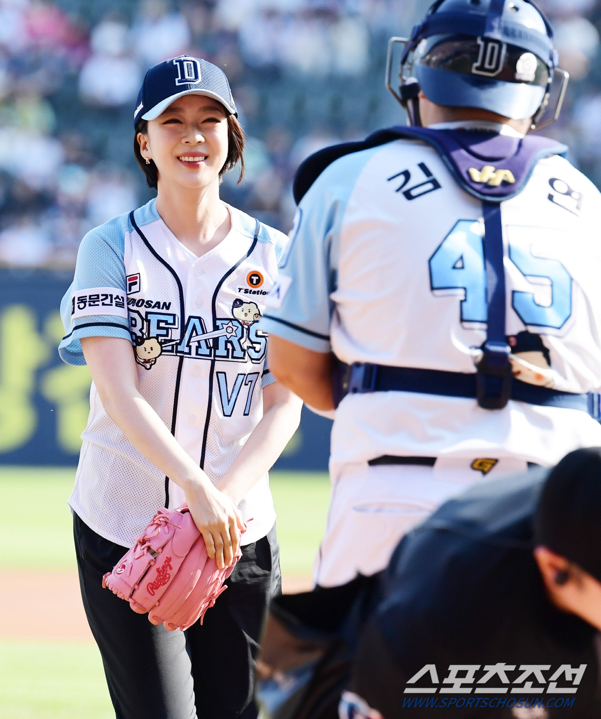 9일 잠실야구장에서 열린 KBO리그 두산과 KIA의 경기. 국회의원 배현진이 경기에 앞서 시구를 하고 있다. 잠실=송정헌 기자songs@sportschosun.com/2024.06.09/