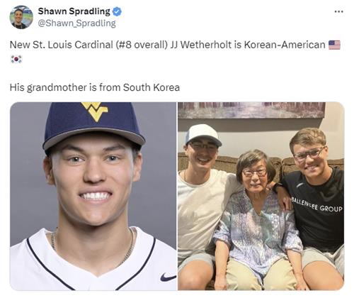 야구 소식을 다루는 숀 스프레들링도 자신의 엑스(X·옛 트위터) 계정에 "그의 할머니는 한국 출신으로 웨더홀트는 한국계 미국인이다"라고 소개했다.