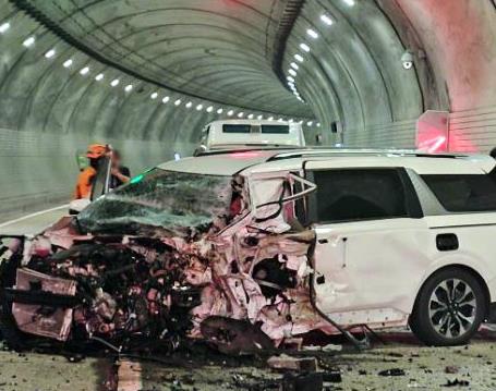 (영월=연합뉴스) 이상학 기자 = 16일 오전 1시 27분께 강원 영월군 국도 38호선 영월2터널에서 카니발 승합차가 마주오던 셀토스 SUV 차량과 정면 충돌했다.