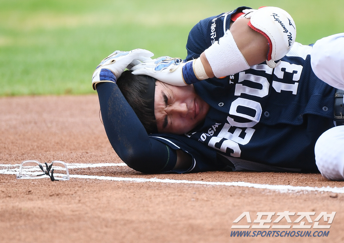 21일 서울 잠실구장에서 열린 두산-LG전. 1회초 무사 1루 두산 허경민이 LG 에르난데스의 직구에 머리를 맞아 쓰러졌다. 허경민이 고통스러워하고 있다. 잠실=정재근 기자 cjg@sportschosun.com/2024.9.21/