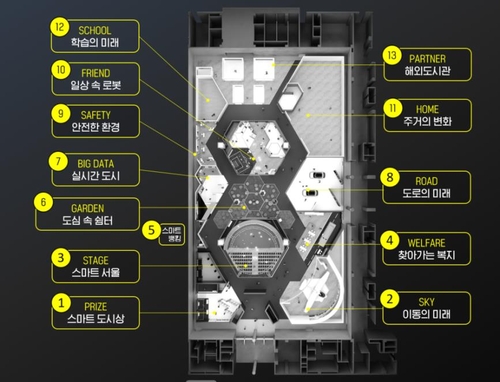 쇼룸은 ▲ 일상 속 로봇 ▲ 주거의 변화 ▲ 도로의 혁신 ▲ 이동의 미래 ▲ 찾아가는 복지 ▲ 안전한 환경 등 12개 주제로 구성되며, 대기업 및 중소기업, 기관 등 총 42곳이 참여해 미래 도시 생활의 체험 기회를 제공한다.