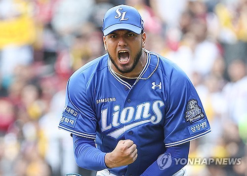 (서울=연합뉴스) 김경윤 기자 = 삼성 라이온즈의 제1선발 데니 레예스(27)가 한계 투구 수를 극복하는 투혼을 펼치며 팀을 한국시리즈(KS·7전4승제)로 이끌었다.
