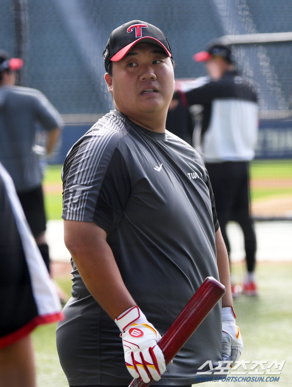 19일 잠실구장에서 열린 플레이오프 4차전 LG 트윈스와 삼성 라이온즈의 경기. LG 김범석이 타격 훈련을 하고 있다. 잠실=박재만 기자 pjm@sportschosun.com/2024.10.19/