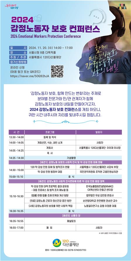 120다산콜재단은 오는 20일 시청에서 2024 감정노동자 보호 콘퍼런스도 개최한다.