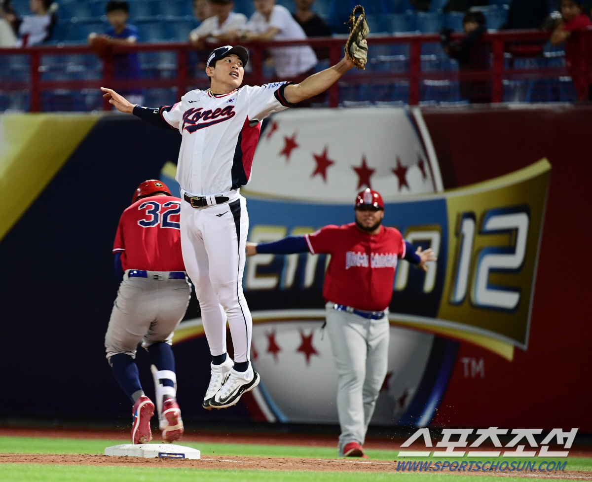 16일 프리미어12 야구대표팀이 대만 타이베이 티얀무구장에서 도미니카공화국과 경기를 펼쳤다. 1회초 도미니카 세스페데스가 내야안타를 치고 출루하고 있다. 타이베이(대만)=송정헌 기자songs@sportschosun.com/2024.11.16/
