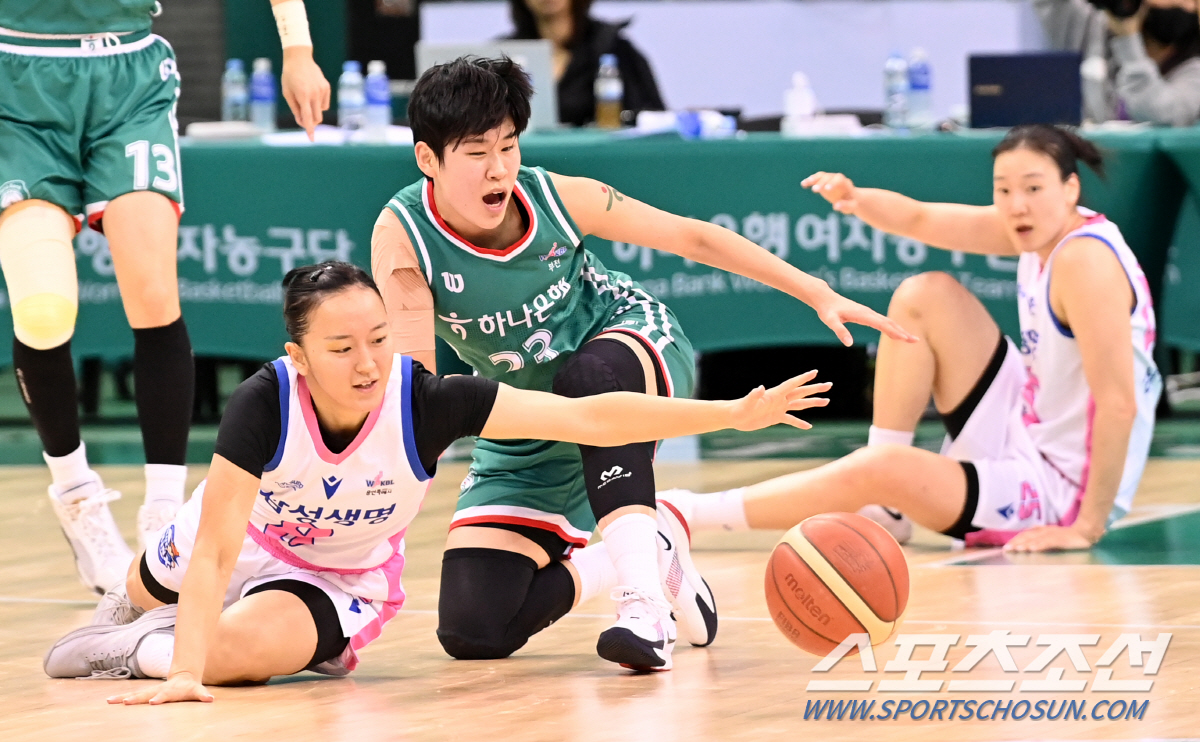 22일 부천체육관에서 열린 여자프로농구 하나은행과 삼성생명의 경기, 삼성생명 미츠키와 하나은행 박진영이 공을 다투고 있다. 부천=허상욱 기자 wook@sportschosun.com/2024.11.22/