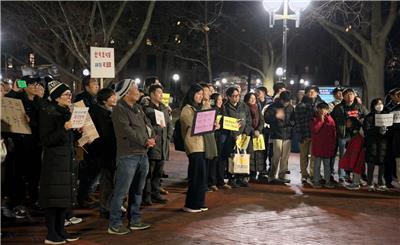(워싱턴=연합뉴스) 조준형 특파원 = 윤석열 대통령의 비상계엄 선포와 뒤이은 윤 대통령 탄핵 국면에서 북미 지역의 일부 한국인 대학원생들과 연구자들이 시국 선언을 발표하고 계엄 규탄 집회를 개최했다.