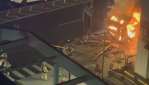 이 택시가 도로로 밀리면서 인근 상가에도 불이 옮겨붙었고, 소방 당국은 오전 4시 26분께 불을 완전히 껐다.