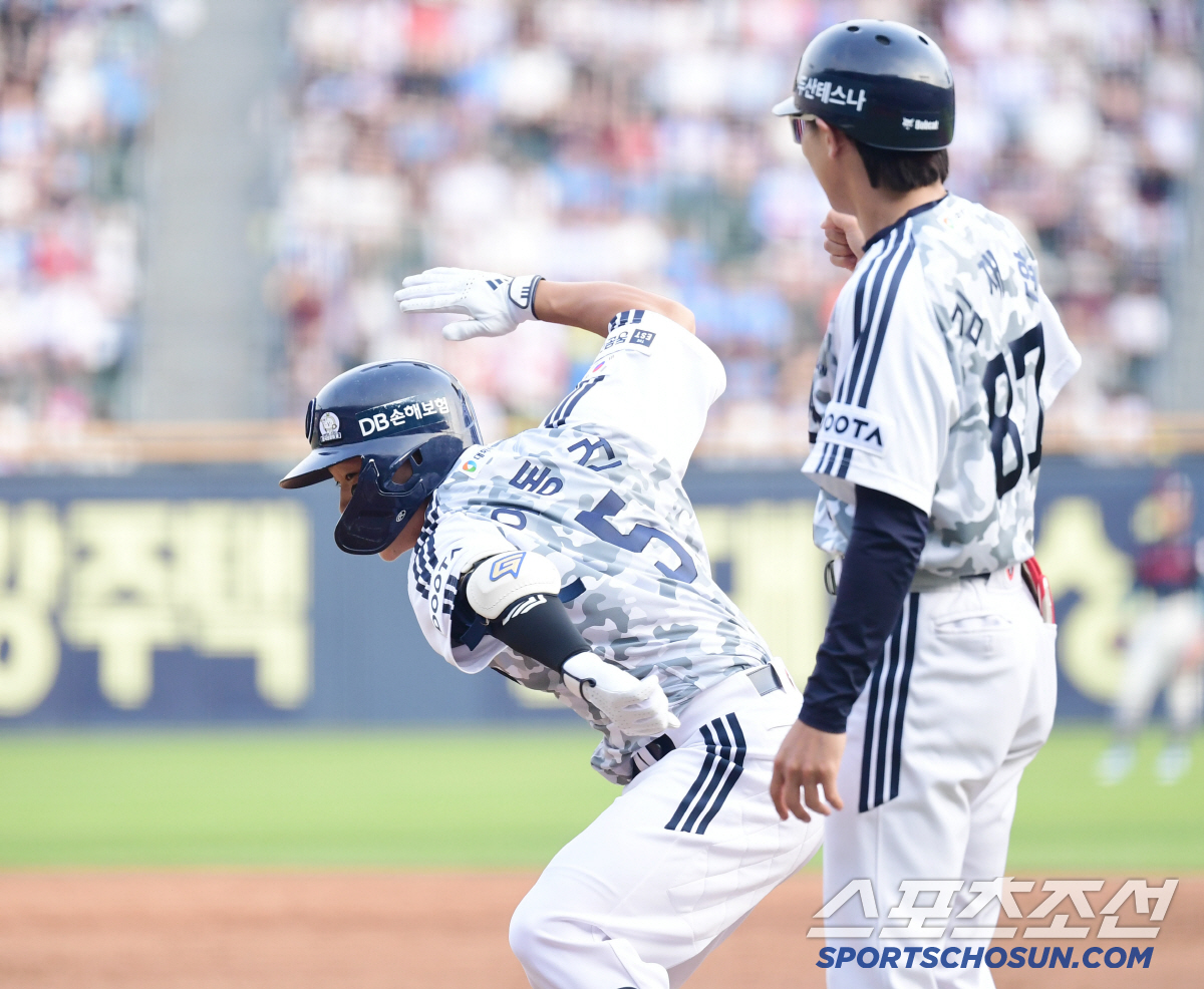 7일 잠실구장에서 열린 두산과 롯데의 경기. 4회말 2사 2루. 1타점 적시타 날린 여동건. 잠실=송정헌 기자songs@sportschosun.com/2025.06.07/