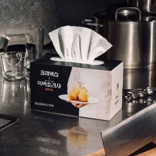 ▲ 유한킴벌리는 넷플릭스 예능 '흑백요리사: 요리 계급 전쟁 시즌2'와 협업한 '크리넥스 뽑아 쓰는 키친타월 흑백요리사 에디션'을 출시했다고 13일 밝혔다. 이 제품은 한 손으로 뽑아 쓰는 방식과 밀폐형 각티슈 타입 구조를 적용하고, 기존 제품 대비 1.5배 강력한 흡수력의 3단 엠보싱 원단으로 제작됐다. 신제품은 전국 주요 대형마트와 네이버 브랜드 스토어 등 온오프라인 채널에서 판매된다. (서울=연합뉴스)