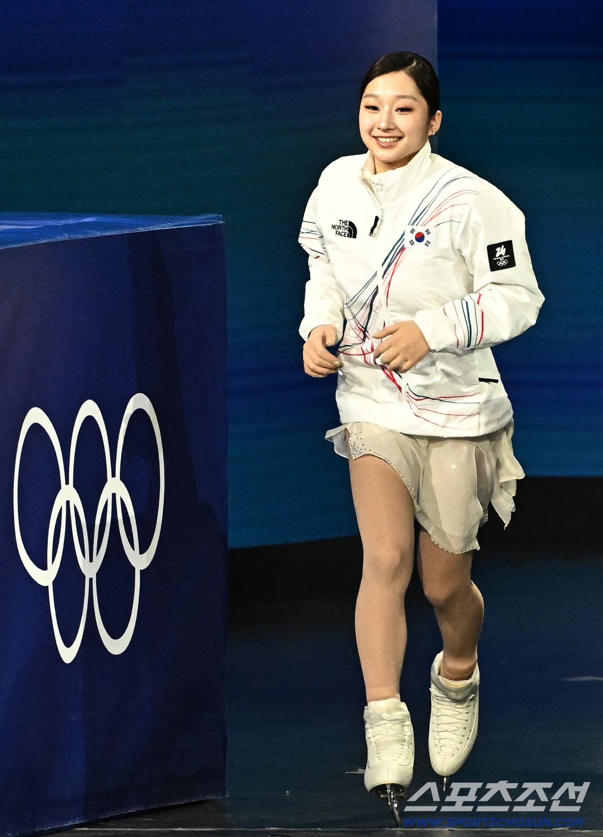 20일(한국시간) 이탈리아 밀라노 스피드스케이팅 아레나에서 열린 밀라노동계올림픽 여자 피겨 프리스케이팅 경기. 밝은 표정으로 링크에 나서는 신지아. 밀라노(이탈리아)=송정헌 기자songs@sportschosun.com/2026.02.20/