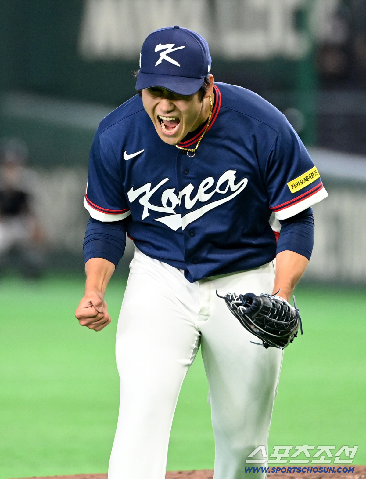 9일 일본 도쿄돔에서 열린 WBC(월드베이스볼클래식) 한국과 호주의 경기, 6회말 1사 1루 박영현이 화이트필드를 병살로 처리하며 이닝을 끝낸 뒤 환호하고 있다. 도쿄(일본)=허상욱 기자wook@sportschosun.com/2026.03.09/