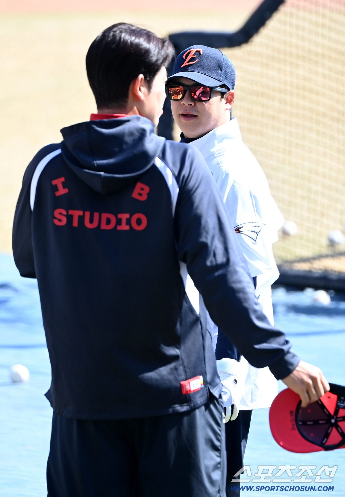 20일 대전한화생명볼파크에서 열린 KIA와 한화의 시범경기, KIA 이태양이 한화 노시환과 인사를 나누고 있다. 대전=허상욱 기자wook@sportschosun.com/2026.03.20/