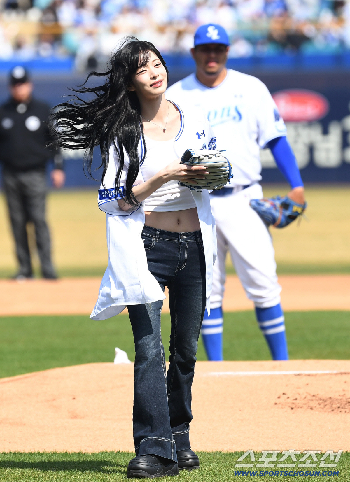 28일 대구 삼성라이온즈파크에서 열리는 삼성과 롯데의 개막전 경기. 기념 시구를 하고 있는 걸그룹 '프로미스나인' 이채영. 대구=송정헌 기자songs@sportschosun.com/2026.03.28/