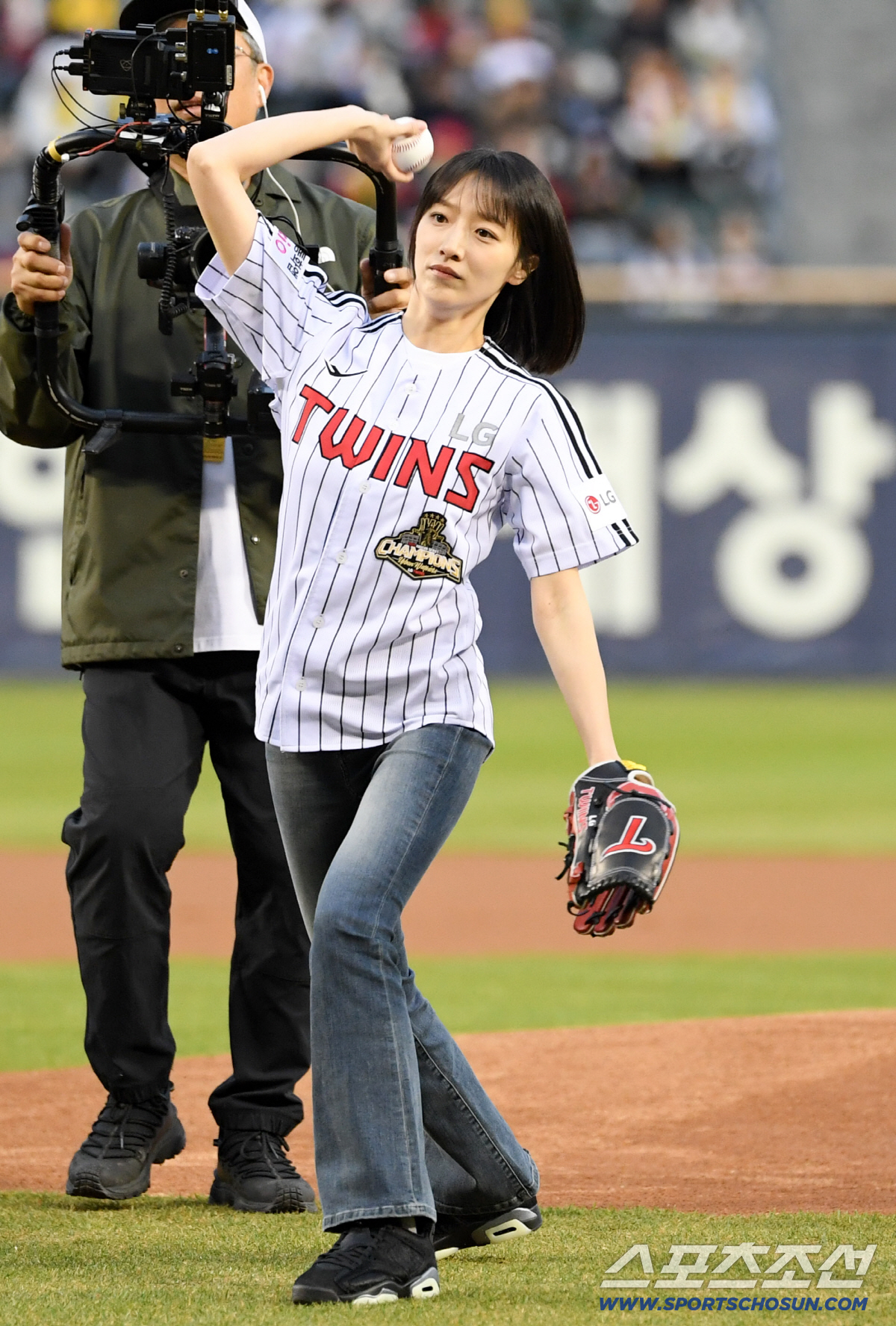 31일 잠실구장에서 열린 LG와 KIA의 경기. 표예진이 시구를 하고 있다. 잠실=박재만 기자 pjm@sportschosun.com/2026.03.31/