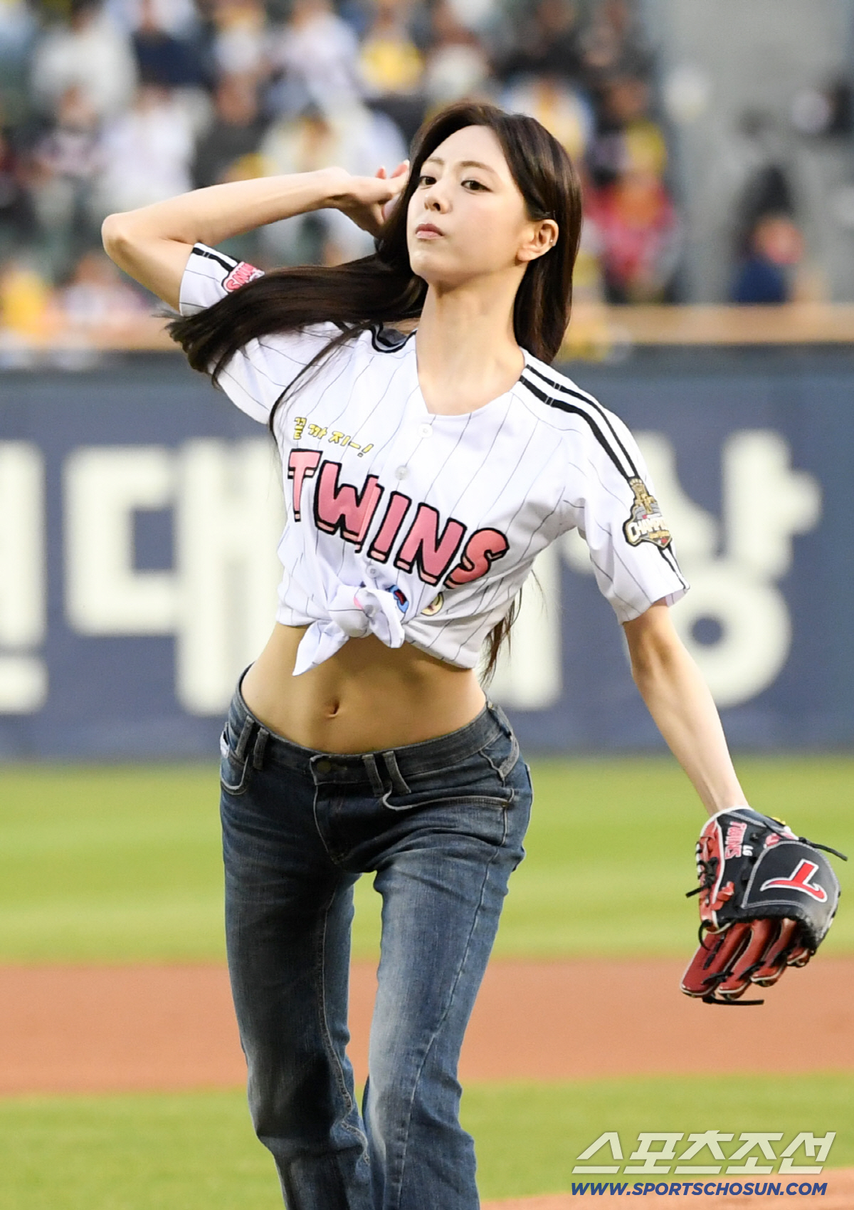 1일 잠실구장에서 열린 LG와 KIA의 경기. 있지 유나가 시구를 하고 있다. 잠실=박재만 기자 pjm@sportschosun.com/2026.04.01/