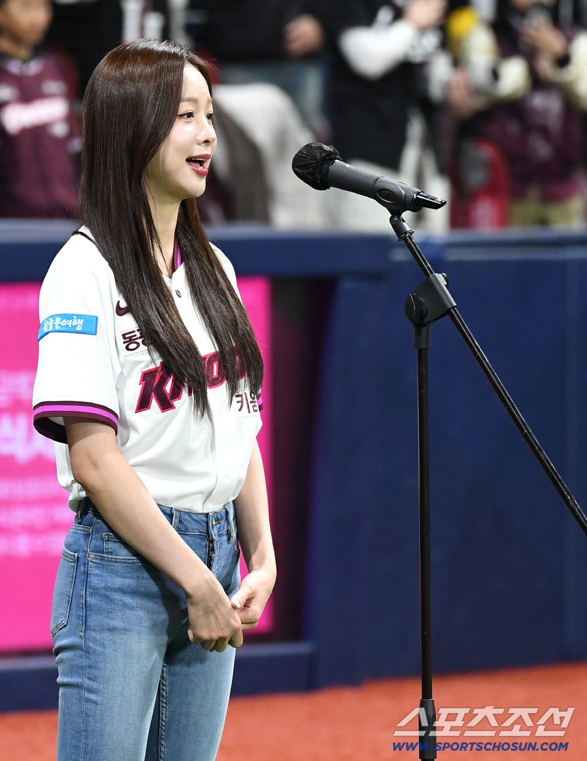 3일 고척돔에서 열린 KBO리그 키움과 LG의 경기. 키움 홈경기 개막식 시구를 하는 솔지가 애국가를 부르고 있다. 고척=송정헌 기자songs@sportschosun.com/2026.04.03/