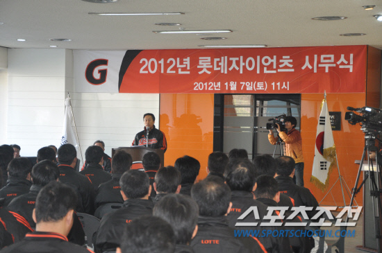 롯데 장병수 사장이 2012 시즌 시무식에서 한국시리즈 우승에 대한 강한 열망을 드러냈다.