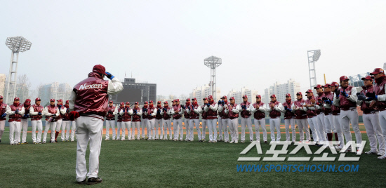 2012시즌을 앞둔 넥센이 시무식과 새해 첫 훈련을 9일 목동구장에서 가졌다. 오전 10시40분에 시작된 시무식에서 이장석 대표는 "올해가 5시즌째다. 이제는 기대를 갖고 지켜보겠다"고 신년사를 했다. 이어 김시진 감독은 "올해는 변신의 해다. 말보다 행동이 앞서도록 노력하자"고 당부했다.