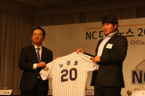 김경문 감독은 이날 '투수 노성호-타자 나성범'을 NC의 프랜차이즈 스타로 키우겠다고 선언했다. 노성호 역시 이를 인지하고 있었다. 그는 "제주도에서 아프다고 등판을 못하고 한동안 나약한 모습을 보인 적이 있었다. 그때 감독님이 '팀의 기둥인데 이런 모습 보이면 되겠냐'고 했다. 그때 정신이 번쩍 들었다"고 했다.